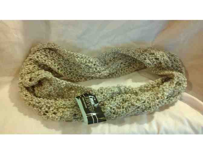 Up for auction is this hand-knitted "infinity" scarf, made with Emu wool, knitted by Donna Banks.