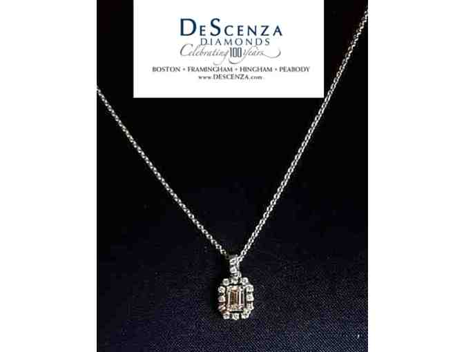 Diamond pendant with an emerald cut center stone weighing over ½ carat at .51 cttw