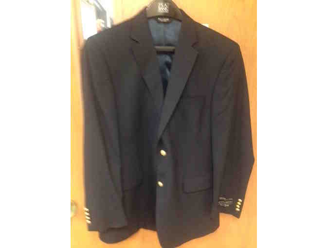 A Men's Executive 2 Button traditional fit Blue Blazer valued at $450.00