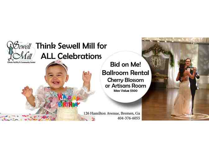 Bid on a Full Day Cherry Blossom Ballroom or Artisan Room Rental at Sewell Mill. (Sunday through Thursday) They are located in Downtown Bremen, GA.