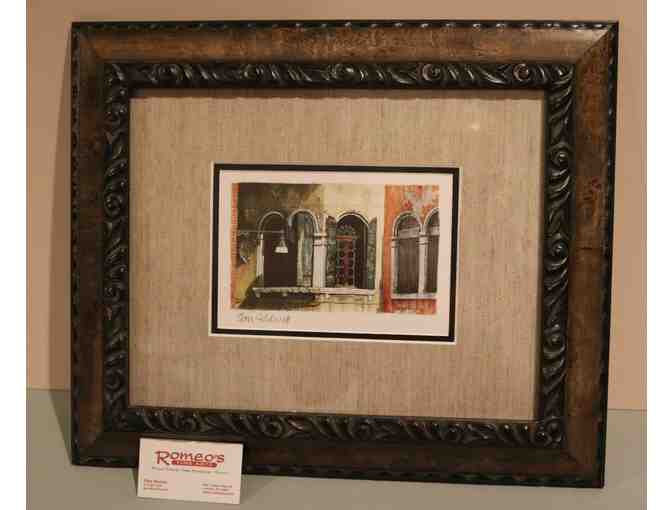 Up for auction is this piece of artwork called "Venetian Windows" by artist Tom Caldwell. The beautiful wood frame measures 15" x 18", and is donated by Romeo's Fine Arts.