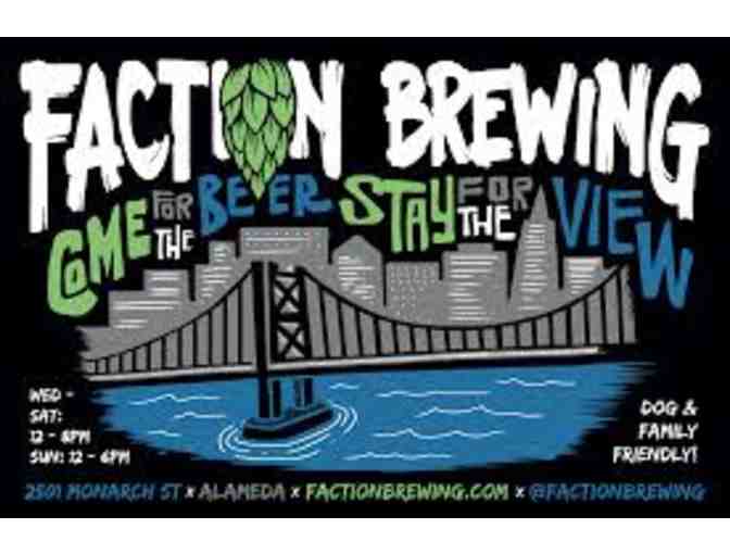 Certificate is good for 2 flights of Faction Beers. Up to 5 - 5oz samples per flight.