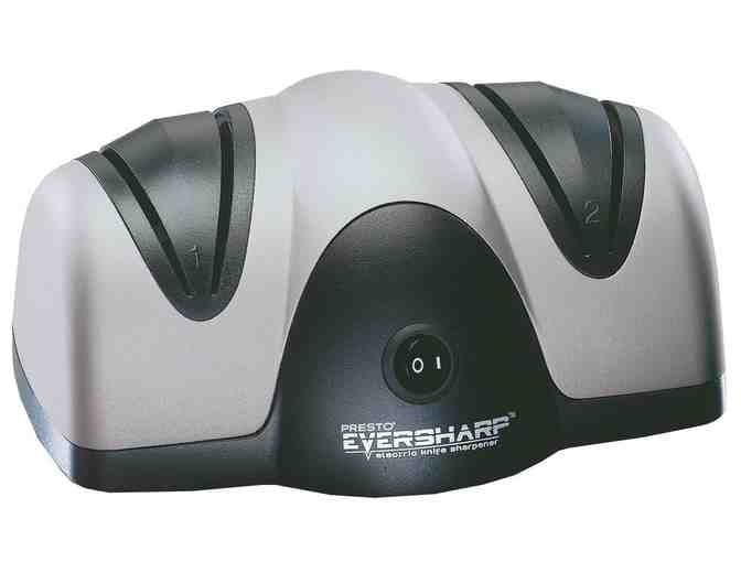 The Presto electric knife sharpener provides an easy, automatic way to sharpen most non-serrated kitchen and sport knives to a razor sharp edge. With a special two stage system, it precision grinds a perfect sharpening angle, then fine hones and polishes the edge for professional results at home, anytime.