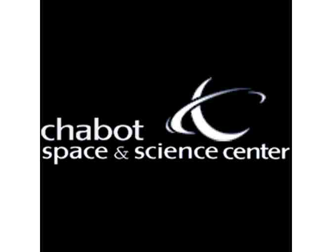 Bid on a certificate for general admission for 4 people to Chabot Space & Science Center. Certificate must be redeemed in person at the Box Office. Can only be used once. Cannot be combined with other offers. Expires 5/31/17