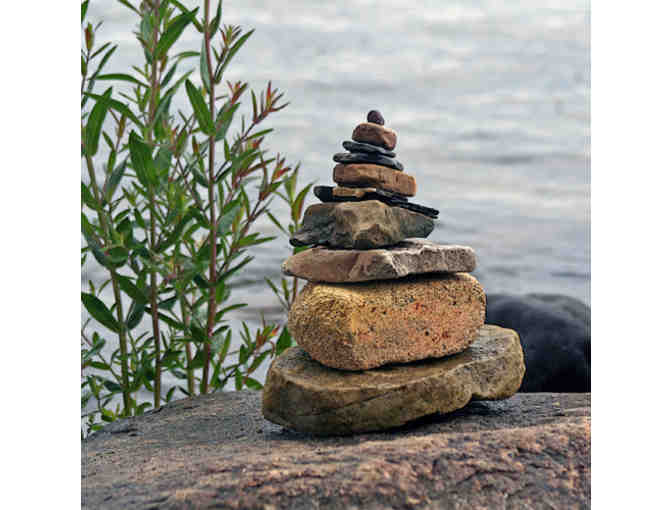 One rainy summer's day, my nieces and I built several rock towers along the lake shore. This is a photo of my favorite tower. It evokes feelings of balance, strength, and calm. The 5x5 inch photo from Linda Hollingdale Photography is matted and framed in a 9x9 inch dark brown wood frame.