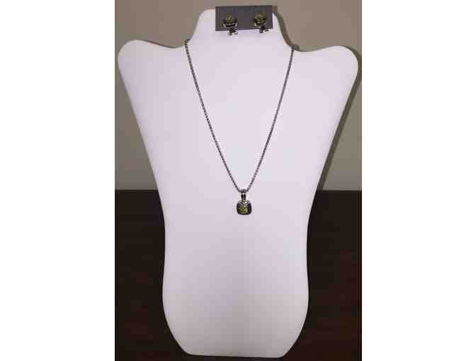 Sparkle Design Two Tone Peridot Colored Crystal Necklace & Earring Set