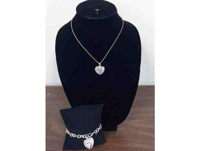 Sterling Silver Filgree Heart Necklace & Earring Set
