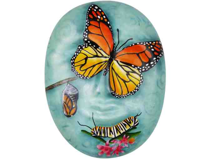 Leslie Kimberly has been painting for 15 years and loves to learn new painting techniques. She is a member of the Society of Decorative Painters and the High Plains Chapter of Decorative Painters. I wanted to paint a mask to support the Denver Hospice because both of my parents were in hospice care. I named my mask “Change…..It Happens”. Whether we are growing and changing as human beings or the changes we go thru when we are ready to move on to another existence, change…happens.