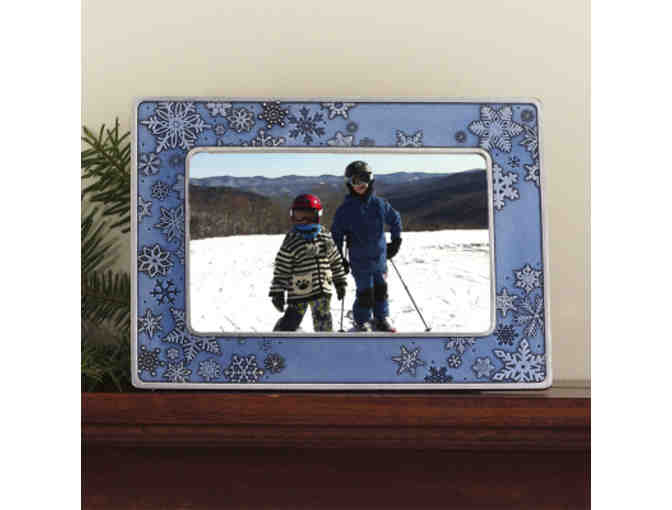 Falling snowflakes are an endless swirl of tiny miracles. Feel that magic every time your gaze falls on your favorite picture in this frame. Fits a 4x6 photo, easel back allows you to display horizontally or vertically. Gift boxed.