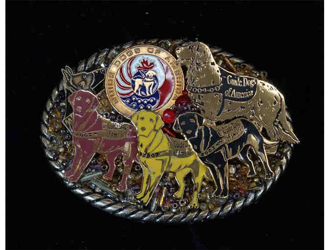 Our very own Grace Cohan created this beautiful belt buckle. It's decorated with GDA lapel pins from the past and lots of sparkle.