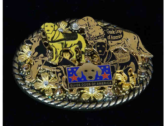 Our very own Grace Cohan created this beautiful belt buckle. It's decorated with GDA lapel pins from the past and lots of sparkle.