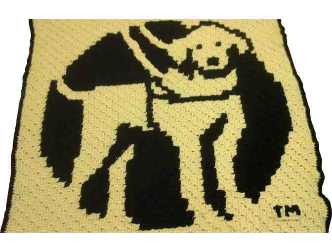 Beautifully conceived yellow and black crocheted throw of the GDA logo. Throw measures 28" x 28".