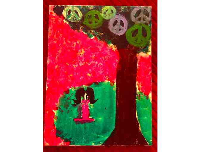 Enjoy your chance to make prints or customized items with the "Painting for Peace" images made by your Mexican Bobcat in Janet C./Jordan's 4/5 class. This digital copy of the child's unique artwork can be used to print additional copies, custom order mugs, note cards, or other items of your choice, or share the peace among extended family members. This item is the digital file only. For the original artwork, see item #334.