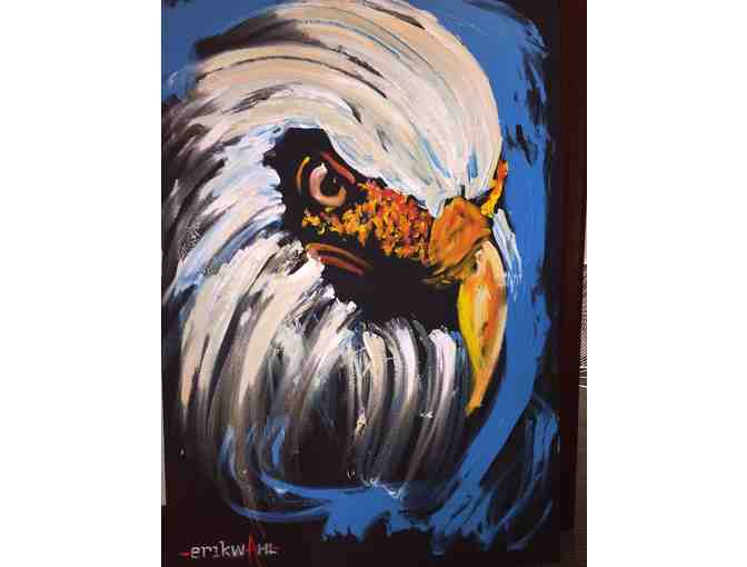 Featuring a 48” x 32” portrait of an American Bald Eagle, acrylic on canvas stretched onto a wooden frame executed and signed by Erik Wahl.