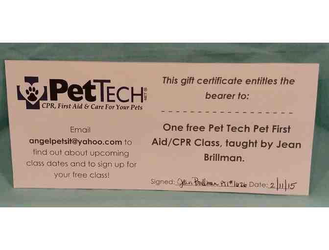 Up for auction is this first aid/CPR class, taught by Jean Brillman from Pet Tech.