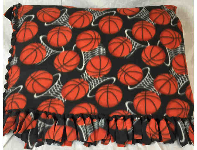 Basketball themed fleece throw measuring approximately 38" x 52".