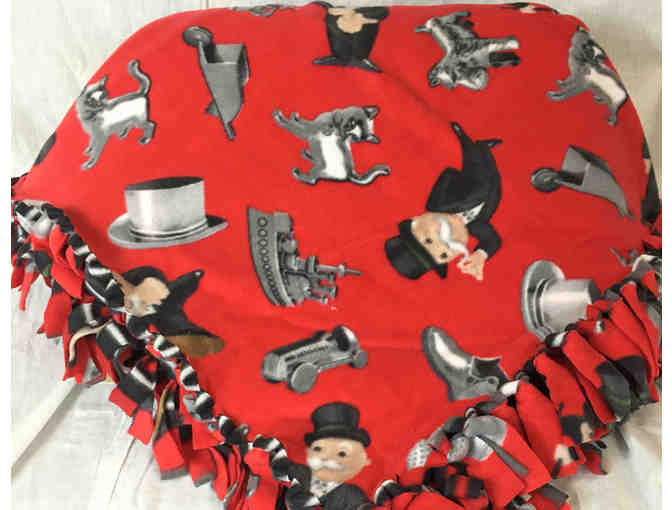 Monopoly themed fleece throw measuring approximately 50" x 50".