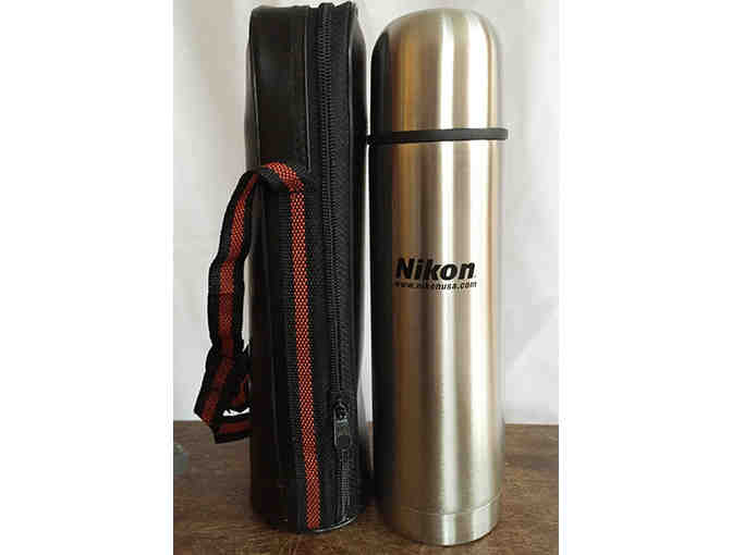 Nikon Thermal Stainless Steel Flask in Black Leather Case
