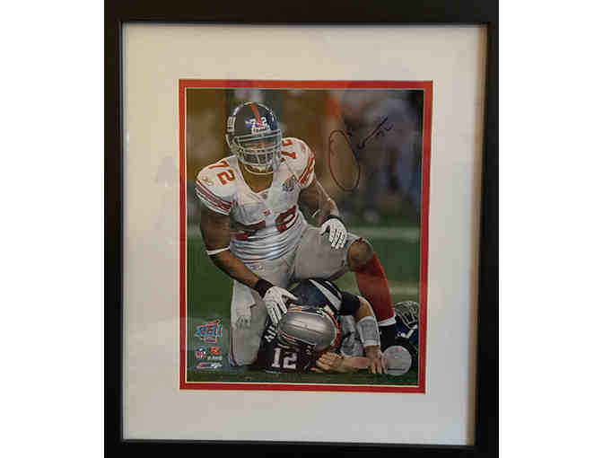 Nicely framed photo of Osi kneeling on everyones fave Patriots hottie, Tom Brady. Signed by Osi Umenyiora. Great condition - A real collectable!