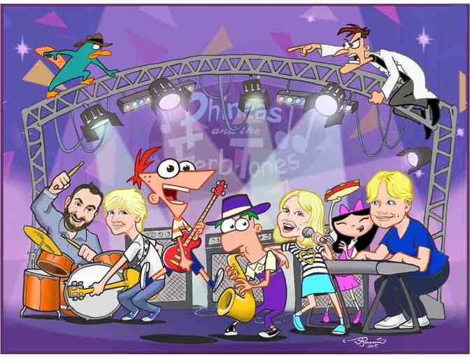 Your children will rock out with their favorite Disney characters, Phineas and Ferb, in a custom portrait illustrated by hit television show co-creator and Walden parent Dan Povenmire. Your hand-drawn, pen and black ink 11x14” portrait will feature up to five children playing in a band with their cartoon heroes and will be signed by the artist. A color JPG bearing artist’s signature will also be included so families may reprint color portrait to custom size.