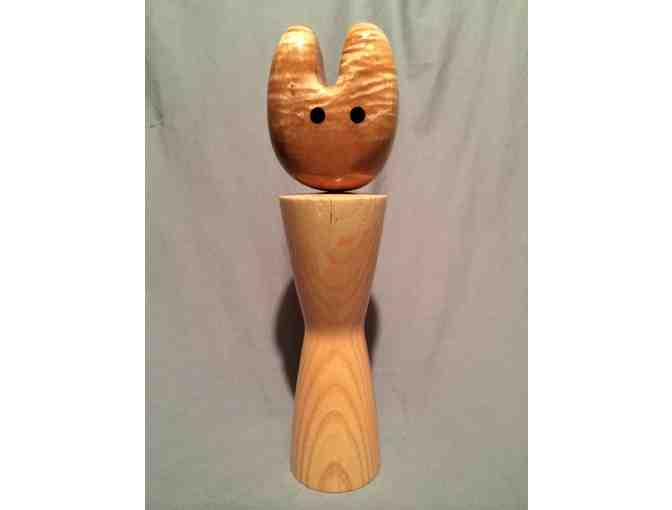 His sculptures are primarily made of wood and demonstrate his mastery of the traditional methods of woodworking. For the past five years, his primary focus has been on abstract images of animals and bird. Details are removed and the creatures are boiling down to their essence, allowing the viewer to focus on the contour, surface, and texture of the work. The works are smooth and heavily coated with lacquer, taking on the appearance of candy. The creations seem to be at peace with their place in the world, seductively drawing the viewer into a world that they wish were real; a world (word choice, world has been used a lot in this sentence, perhaps realm?) of happy creatures that ask nothing of us — all they want is to be loved.