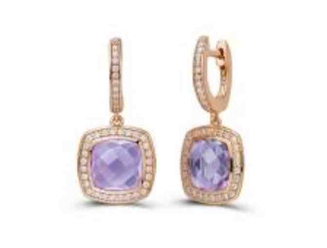 These elegant earrings are set with a genuine square cushion checkerboard-cut amethyst surrounded by Lafonn's signature Lassaire simulated diamonds in rose gold plated sterling silver.