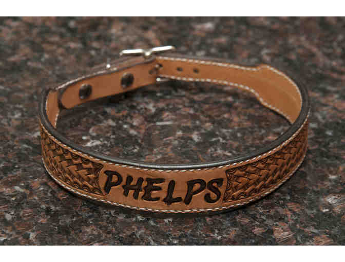 Custom 100% Leather Dog Collar personally hand crafted by Doug Sobel with your Dog’s name on it.