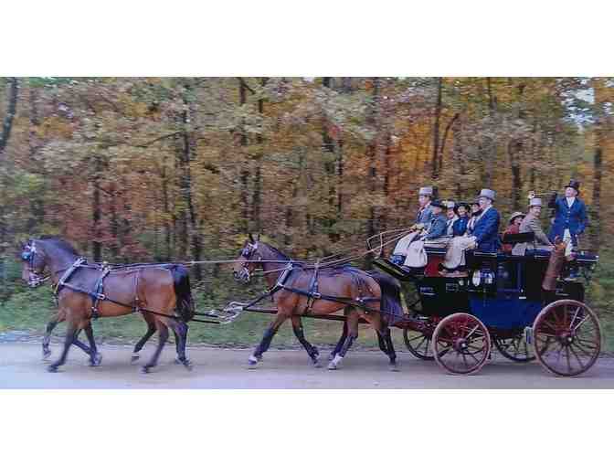 You will be driven on a beautifully restored antique carriage drawn by four matched horses that have been Grand Champions at the Devon Horse Show and have participated in many invitational events along the Eastern seaboard including, Florida, Southern Pines, Richmond, Middleburg, Aiken, Saratoga, and Newport.
