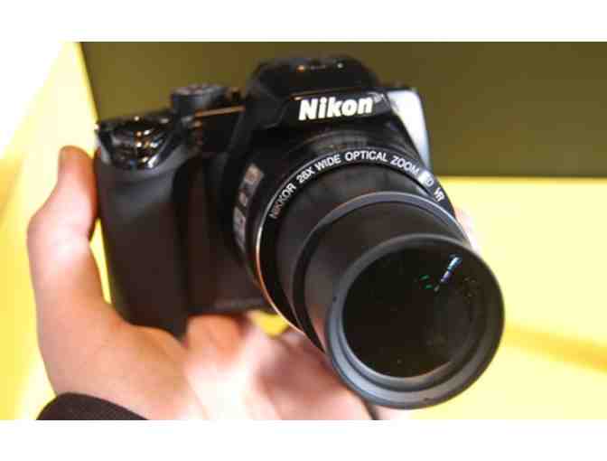 Zoom closer, shoot faster, and do more with Nikon's Coolpix P100, with its new CMOS sensor, 10.3 effective megapixels and incredible 26x optical Zoom-Nikkor ED glass lens. The cameras huge bright 3.0-inch high-resolution HVGA (460k-dot) vari-angle LCD and Electronic Viewfinder makes it easy to compose and share your pictures. Shoot Full HD (1080i) video with stereo sound as well as high-speed 10fps shooting at full resolution.