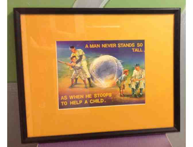 Joe DiMaggio and Honus Wagner Photo. "A Man Never Stands So Tall As When He Stoops to Help a Child." Framed. 21" x 17"