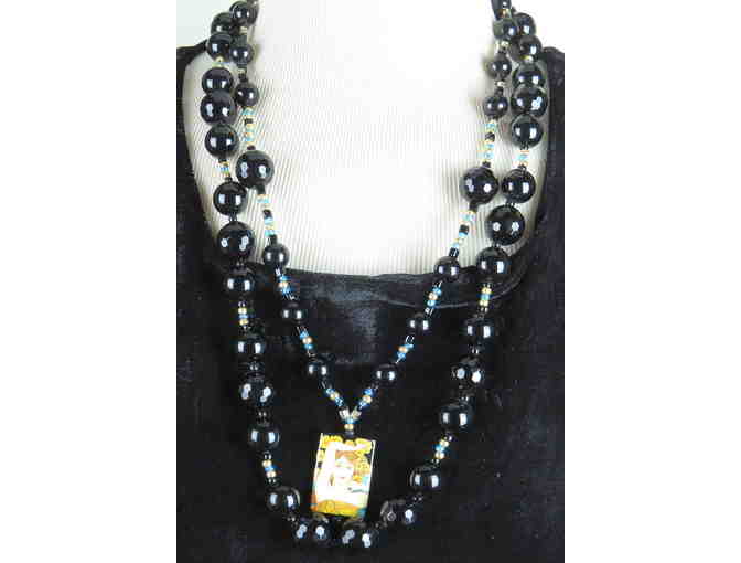 ! Gorgeous! 1/KIND GEMSTONE NECKLACE #406: Features Hand Painted Artwork on ONYX!