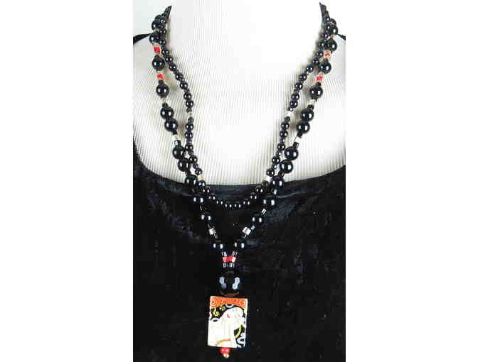 ! Gorgeous! GEMSTONE NECKLACE #401 Features Hand Painted Art on Onyx!