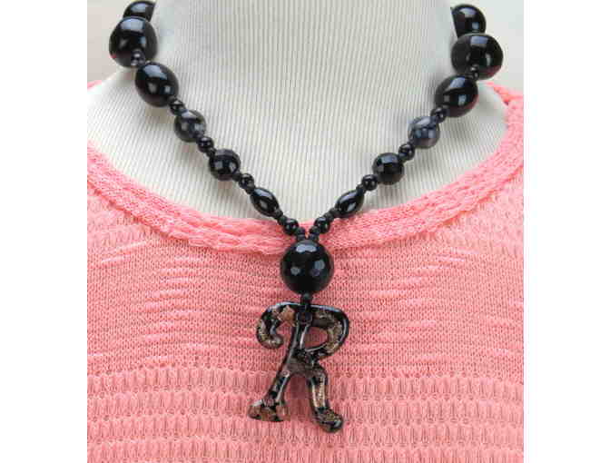 #758: 1/Kind Necklace w/Semi Precious Gems! Unique "R" Initial Pendant!