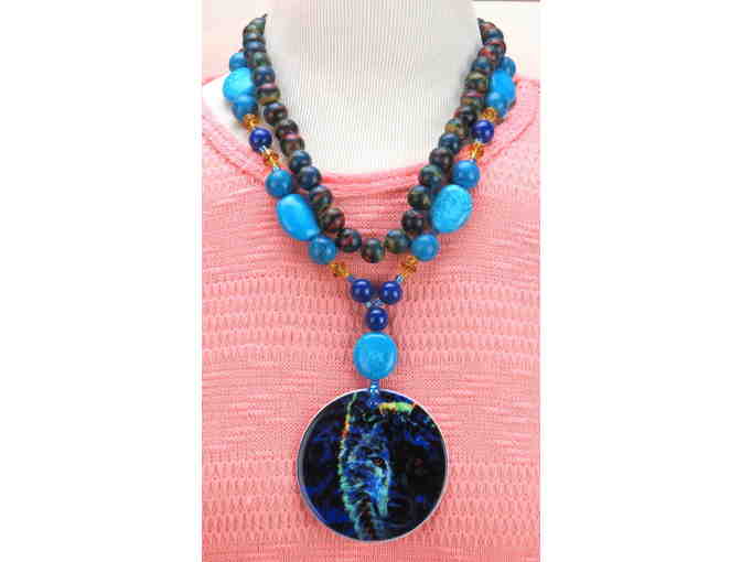 #796: 1/Kind Necklace with Gemstone Elements & Unique Porcelain Art Pendant!