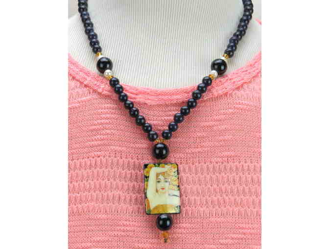 #740: 1/Kind Necklace with Semi Precious Gems! w/ Unique Art on Onyx Pendant!
