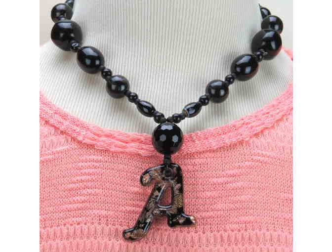#751: 1/Kind Necklace w/Semi Precious Gems! Unique "A" Initial Pendant!