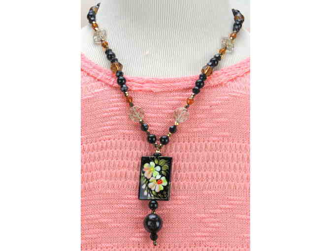 #816: 1/Kind Necklace with Semi Precious Gems and Hand Painted Onyx Focal Elements!