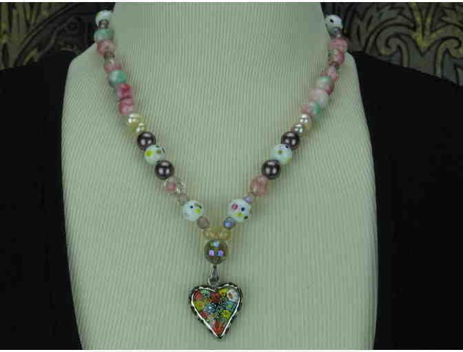 Lovely & Precious Necklace w/Pearls, Jasper, Painted Porcelain Beads, and HEART! 1/Kind!