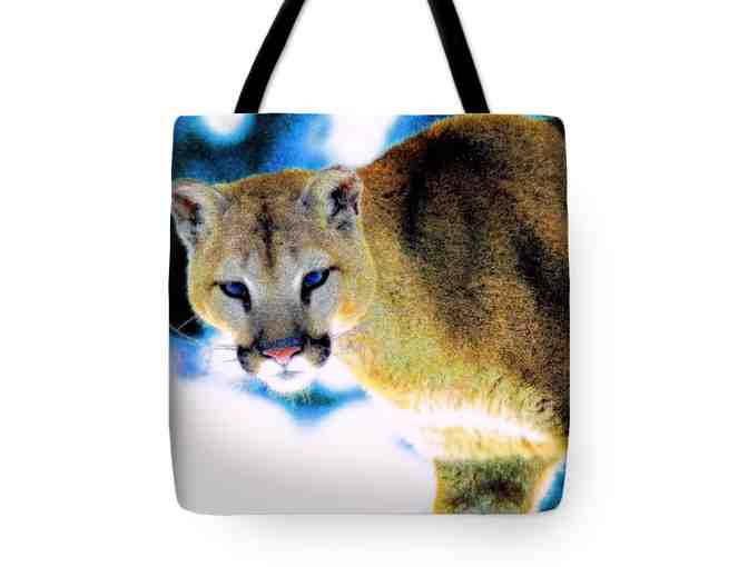 ! ART TOTE ! 18X18", MADE IN THE USA: "A Cougar In Winter" by WBK