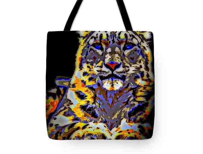 ! Art Tote !: 18x18", MADE IN THE USA!: "CARLOS, THE SNOW LEOPARD" BY WBK