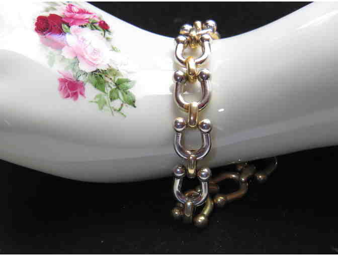 BR-4: Two Tone *reversible Yellow and White Gold, 14 kt, Horseshoe Bracelet