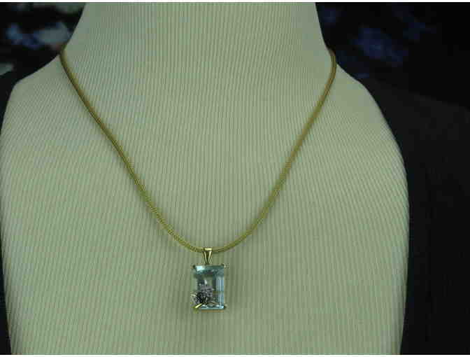 N3: Precious Aquamarine Slide w/Tanzanite Accent, on 14 kt gold woven necklace