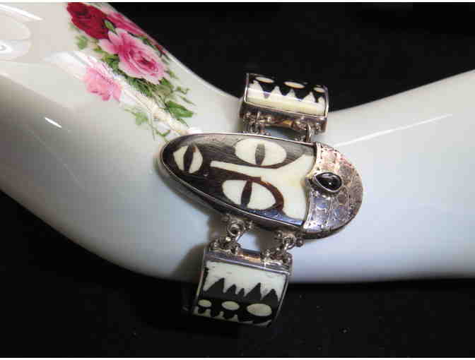 BR-13: Exotic Carved Stones featured in this unique Sterling Silver Bracelet made in Bali