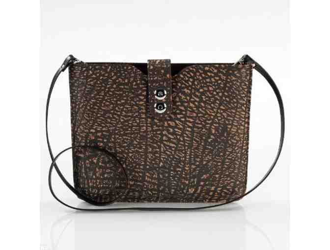 | Using the finest exotic leathers and materials, Nina Raye's bags complement any ensemble. This sleeve is stylish enough and roomy enough to store your electronics safely and fashionably. This handcrafted brown iPad sleeve features a snap enclosure and removable strap, made from genuine buffalo leather. Measures approx. 11" x 9" (bag); 44" (strap). List Price: $500.00