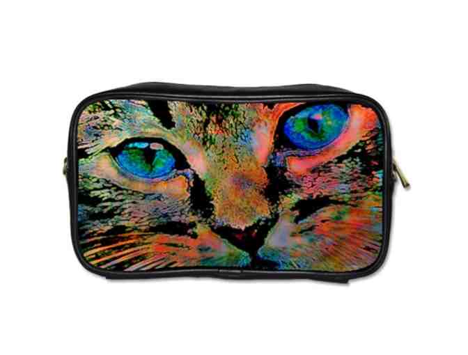 "YEAR OF THE CAT" UNISEX LEATHER ESSENTIALS BAG W/ART INSET, DETACHABLE STRAP