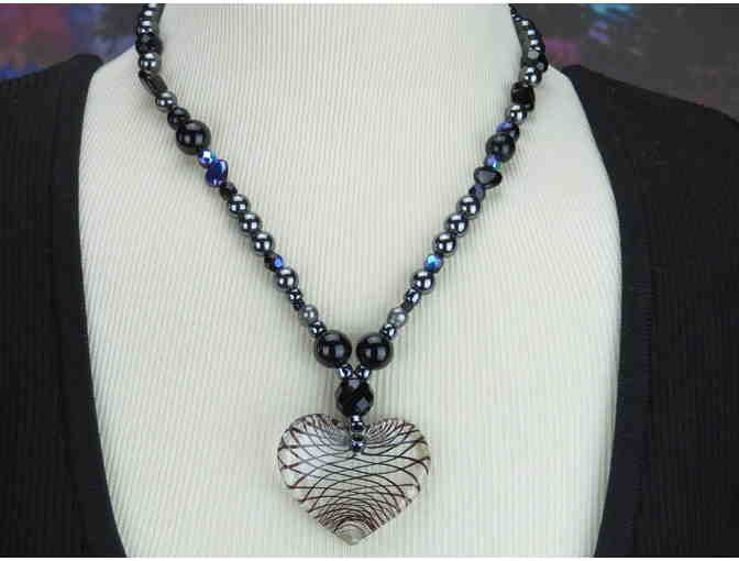 - Featured Components: Lampwork Glass Heart Pendant, Onyx, Hematite
