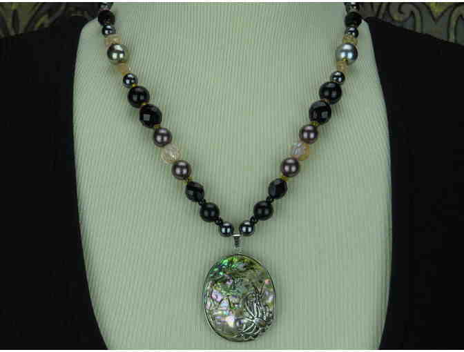 Magnificent Necklace w/ Puffed Paua Shell Pendant, Onyx, Hematite! 1/Kind Handcrafted!
