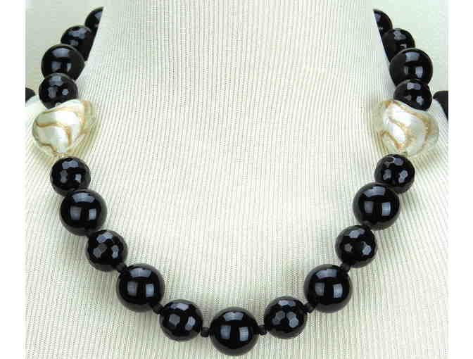 HUGE Onyx Beads and Hearts are featured in this 1/KIND GEMSTONE NECKLACE #258