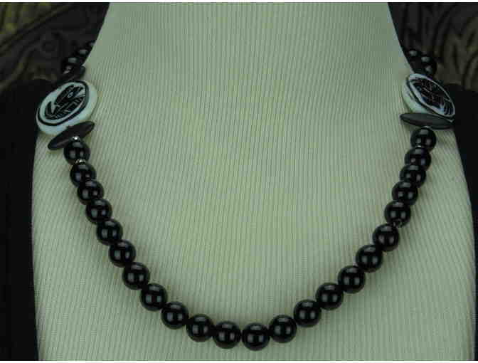 Classic Necklace w/Black Onyx and Porcelain Focal Accents, 1/kind Handcrafted!