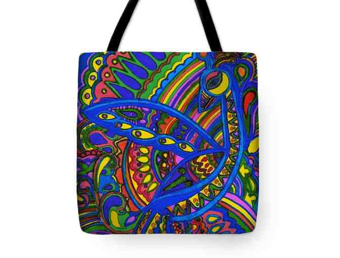 ! ART TOTE! , 18X18": MADE IN THE USA: "A PEACOCK FANTASY" BY WBK